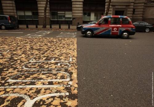 Так, практически без усилий человека, был изобретен новый способ органической печати по дорожному покрытию, а осенняя улица облетела английские, и не только, СМИ. Фотограф, заметивший и подаривший это чудо миллионам британских читателей газет, назвал его "ковер, вышитый автомобилистами и машинами", хотя, возможно, вернее было бы сказать "ковер, вышитый сам по себе".