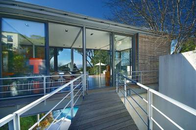 «Дом-Мост», спроектированный архитектурным бюро Van Der Merwe Miszewski Architects, расположен в одном из крупнейших городов ЮАР — Кейптауне. Здание получило свое название за галерею из стекла и стали, расположенную перпендикулярно к крыше основного корпуса. Дом предназначен для семьи до 8 человек.