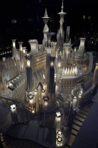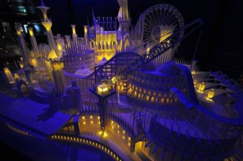 Мастер оригами из Японии Ватару Итоу потратил четыре года на создание невероятной модели города из бумаги. Размером 2.4м на 1.8м и высотой 1м, он был сделан полностью из бумаги. Ватару только использовал специальный клей, фигурные ножницы и дыроколы. Ватару Итоу (Wataru Itou) учится на гуманитарном отделении Токийского Университета. После кропотливого четырехлетного труда он представил публике свою работу под названием Umi no Ue no Oshiro, (в переводе «Замок в океане» ). «Замок в океане» это инсталляция роскошного замка , выполненная полностью из бумаги. Для зрелищности автор сделал разноцветную подсветку и добавил движущиеся объекты - "Чертово колесо" и игрушечный поезд.